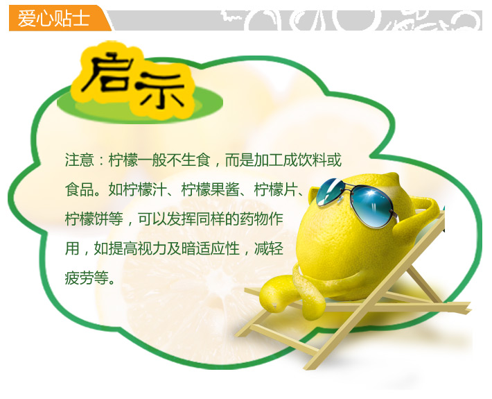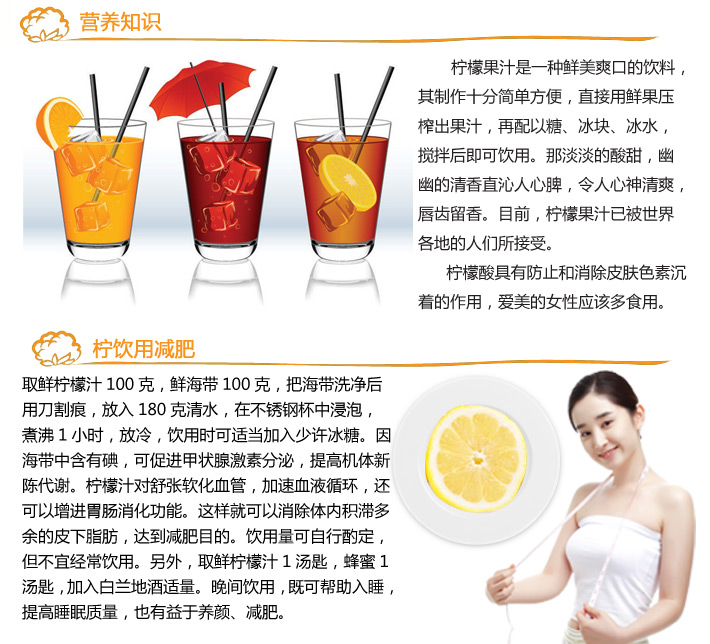 Lemon is rich in vitamin C, citric acid, malic acid, high levels of potassium and low sodium content and other elements, very useful to humans. Citric acid is in the process of promoting energy metabolism will participate substances, and can promote bowel motility, contribute to weight loss.
